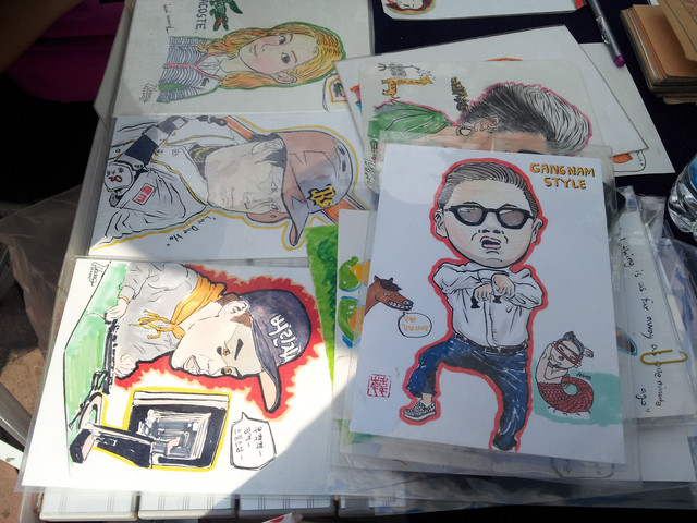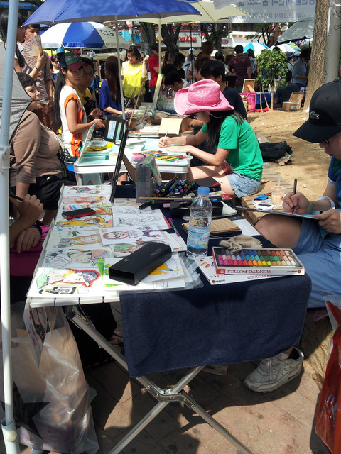 ↓溜滑梯旁的畫畫區生意都很好~ 戴帽子的小姐畫的不是人相