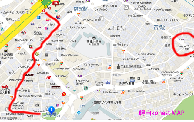 弘大入口9號出來之後請沿著紅線走吧~這是最輕鬆的路